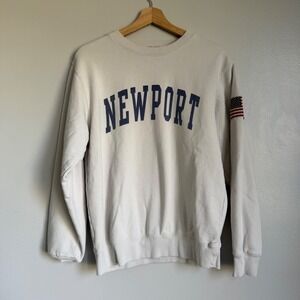 John Galt by Brandy Melville Newport sweatshirt features a classic crew neck and a cozy fleece interior. Designed with a graphic 'NEWPORT' print across the chest and an American flag patch on the left sleeve, this oversized pullover offers a relaxed, vintage-inspired aesthetic. The ribbed cuffs and hem provide a structured fit, making it an ideal layering piece for casual outfits. Crafted from a soft cotton blend, it ensures comfort and durability for everyday wear.