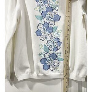 Womens Alfred Dunner Embroidered Sweatshirt Ivory/bleu Long Sleeves Size M