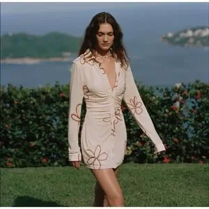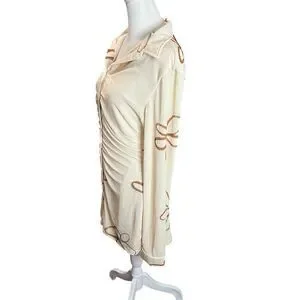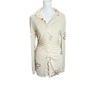 With Jéan Andy Mini Dress Chalk & Flowers Ruched Button Front Long Sleeve S