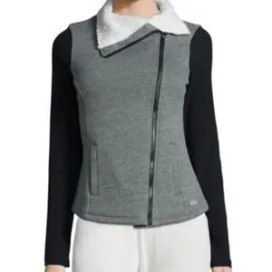 Alo Yoga Tao Asymmetric-Zip Jacket Coat Zip Up Grey fleece lining small