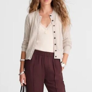 Madewell, cardigan, pointelle, knit, Heather Gray Oat, NX204, Signature Knit, cropped, slim fit, split crewneck, sweater, button up, lightweight, soft, neutral, minimalist, coquette, soft girl, preppy, casual, layering, eco friendly, viscose, Ecovero, spring, fall, feminine