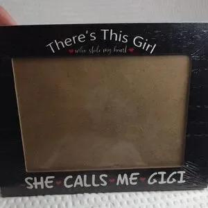 Black picture frame with 'Theres this Girl who Stole My Heart..She Calls Me Gigi' text. Perfect for displaying cherished memories.