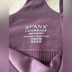 Supportive racerback sports bra from SPANX. Smooth, stretchy fabric for light support. Minimal seams for a sleek silhouette. Pull-on style for easy wear.