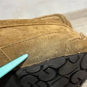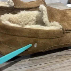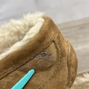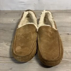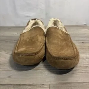 Men's UGG Ascot chenstnut brown tan slipper house shoe. Size tag has been removed but is approximately a size 10. Husband takes a 10.5 and they are slightly tight on him.