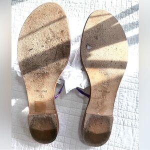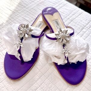 Jimmy Choo Violet Satin Sandals with Rhinestone Encrusted Flowers