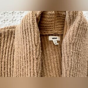 Aerie Oversized Ribbed Knit Cardigan Sweater Tan Camel Open Front Medium