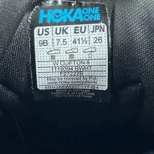 Hoka One One Clifton 8 Women’s Size 9 Black Gym Running Shoes 1119394 BWHT