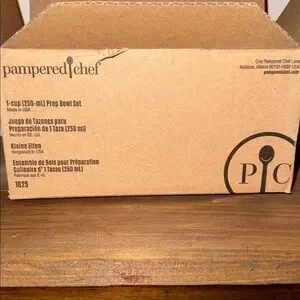 NWT Pampered Chef set of 6 One Cup Prep Bowls with Lids. These are brand new in the box and it only opened the box to show they’re still in the original packaging.