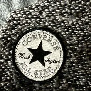 Stylish knit fabric with iconic Converse patch. Black star detail on gray background.