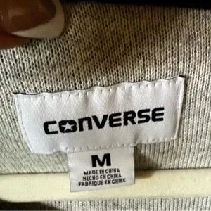 Converse sweater, Converse knit sweater, Converse pullover, wool blend sweater, gray knit sweater, star patch sweater, Converse All Star, casual sweater, streetwear sweater, cozy knit top, women’s medium sweater, preppy casual, athleisure style, fall winter sweater, everyday sweater