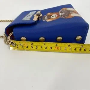 Women’s Royal Blue Teddy Bear Bag with Gold Chain Preowned condition