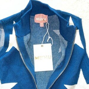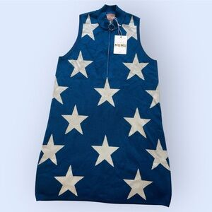 Show Me Your MuMu Navy Stars Knit Zoe Zip Dress
