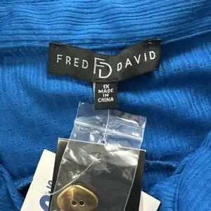 Fred David Blouse Top Women's Plus 1X Button Down Turquoise Blue Gold Button lightweight NEW with tags