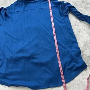Fred David Blouse Top Women's Plus 1X Button Down Turquoise Blue Gold Button NEW