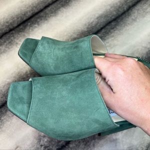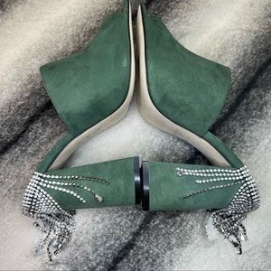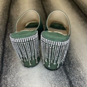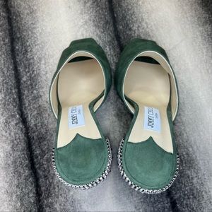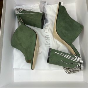 Jimmy Choo Baia 100 mm Crystal Detailed Cactus Suede Mule Sandal Heels
