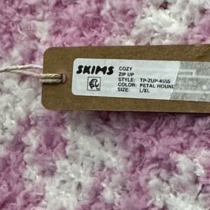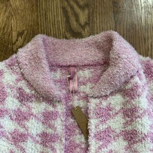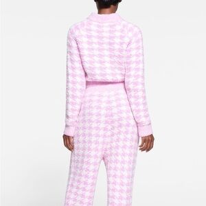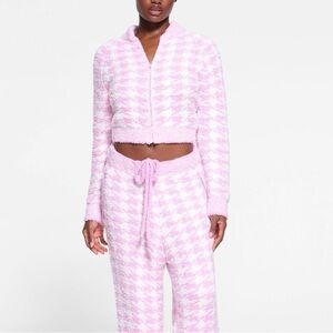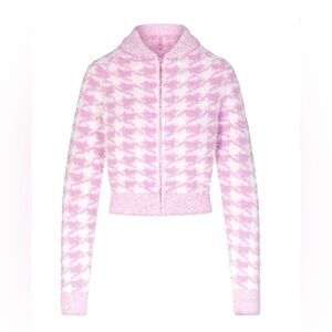 Skims Cozy Knit Zip Up in petal houndstooth