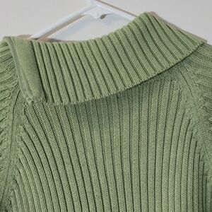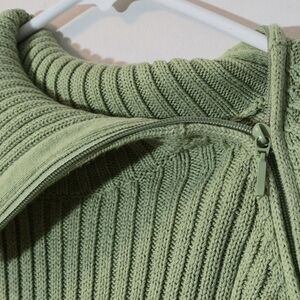 Reitmans XL Sage Green 100% Cotton Asymmetrical Zip Ribbed Sweater
