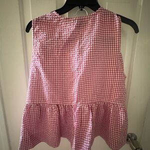 Mable red gingham sleeveless top with decorative tie-front closures. Lightweight, textured fabric for breathable all-day wear. Top and shorts.