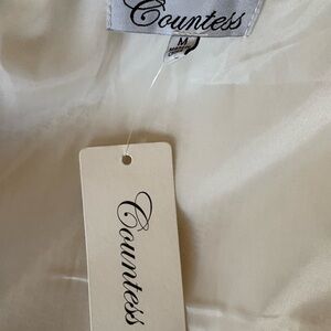 Countess branded faux fur jacket. Luxurious soft fur trim. Smooth cream-white lining. Classic, elegant look. Perfect for dressy occasions.