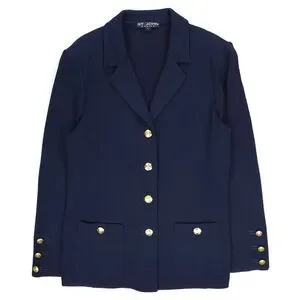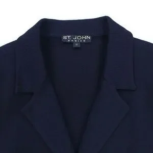 ST JOHN Santana Knit Wool Blazer Navy Quiet Luxury Old Money Academia Preppy