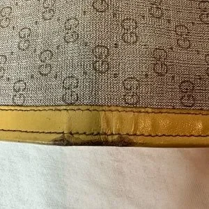 Vintage Gucci Men’s Wallet. Well used, shows signs of wear, leather is worn on corners, some flaking on monogram but still lots of use left.