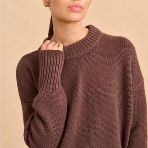 Soft knit crewneck sweater by La Ligne. Relaxed fit with ribbed cuffs and hem. Cozy, everyday style in a rich brown hue.