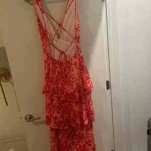 Floral Pink & Red V-Neck Tiered Women’s Dress