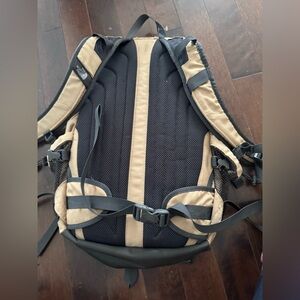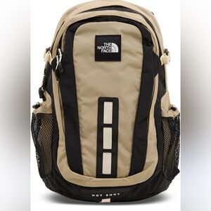 Durable and stylish backpack by The North Face. Features a beige and black color scheme. Ideal for daily use and travel.