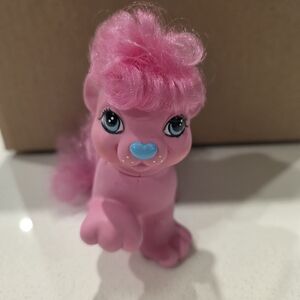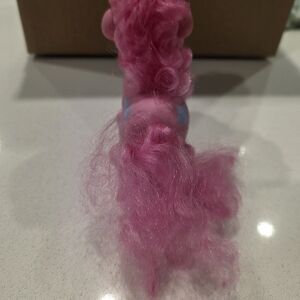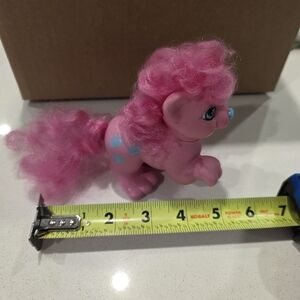Adorable My Little Pony toy. Pink body with curly mane. Blue eyes and accents.