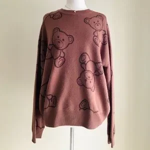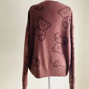 Soft knit sweater with allover teddy bear motif. Crew neckline and relaxed fit. Cozy and stylish for casual wear.
