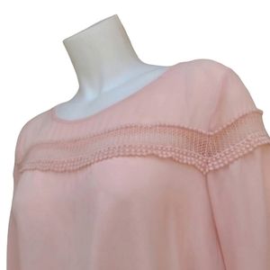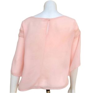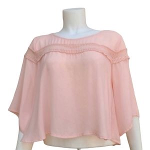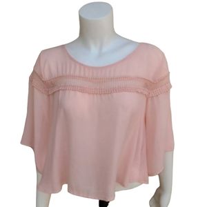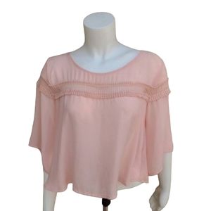 LUSH NORDSTROM Pink Chiffon Crop Top M Blouse Tapered Bell Sleeve Embroidered