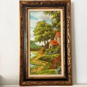 Vintage nature original painting in wooden frame home decor wall hanging art