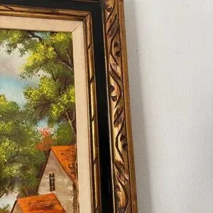 Original artwork landscape painting in a gold custom wood frame