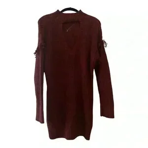 American Rag Woman's Long Sleeve Zinfandel Mock-Neck Open Chest Maroon Size: XS fits a little oversized