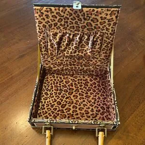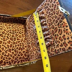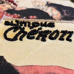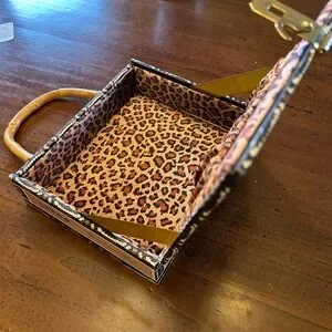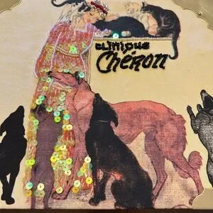 Keywords: Cigar Box Purse, Art Nouveau, French Chic, Kitsch, Eclectic, Maximalist, Animal Lover, Cat Mom, Dog Lover, Boho, Whimsical, Statement Bag, Retro Aesthetic, Paris, France, Theophile-Alexandre Steinlen, French Art, Graphic Design, Clinique Cheron, Veterinary, Sequins, Leopard Print, Retro, Granny Bag