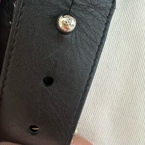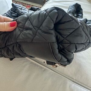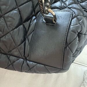 • Black quilted nylon with leather trim