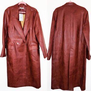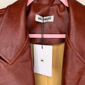 NWT Milk White Faux Leather Oversized Brown Cognac Long Trench Coat Jacket Small