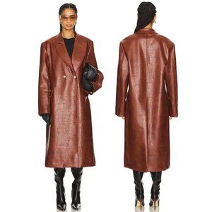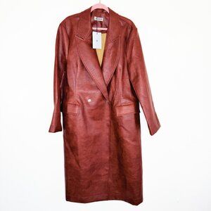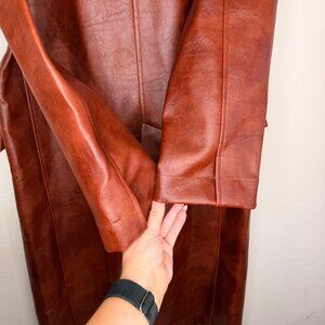 Revolve MilkWhite Chutney Chestnut Cognac Brown Heavyweight Vegan Leather Long Heavyweight Duster Jacket Trench Coat