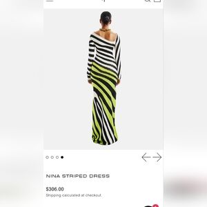 Chic long sleeve dress with bold stripes. Features black, white, and green colors. Elegant and stylish design. Curve hugging, great stretch .2X No longer available on website.