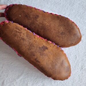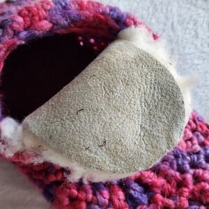 Wool Crochet Slippers Leather Sole Womens Medium Sherpa Wool Lined Cosy Winter