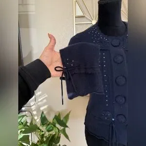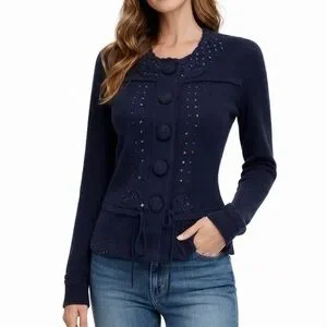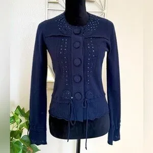 Nanette Lepore 100% Cashmere Navy Cardigan M Sequin Button Vintage Style