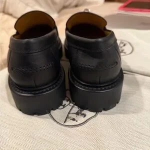 Elegant black leather loafers with a chic silver detail. Perfect for versatile styling. Only worn once only selling because I never reach for them! Size 37-37.5 women’s