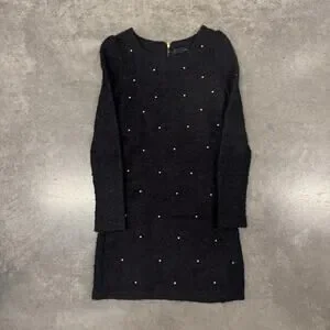Vintage Y2K Longsleeve Black Bead Embellished McGinn Knightsbridge Mini Dress XS