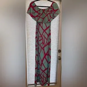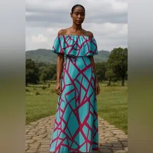 Geometric Pink and Blue Maxi Dress