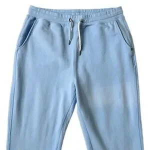 Vuori Women's Laguna Lounge Pants Light Blue Jogger Sweatpants Fleece Drawstring. Good used condition. Note some fading on the front leg and very faint dark mark near back pocket. Size Medium.