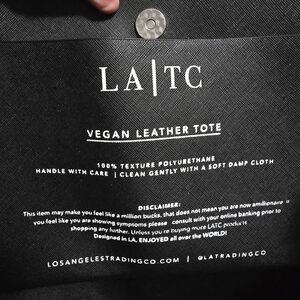 LATC Los Angeles Trading Co. Black Babenciaga Vegan Leather Tote NWT