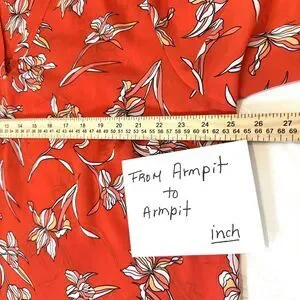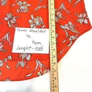 Worthington Women's Plus Size 1X Floral Chiffon Blouse – Orange Tunic Top with 3/4 Roll-Tab Sleeves