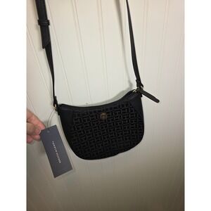 Tommy Hilfiger Black Monogram Jacquard Crossbody Bag Gold Hardware NWT