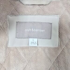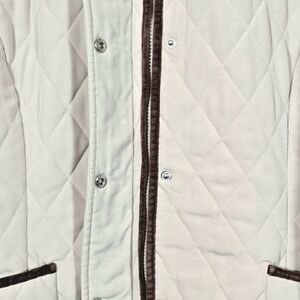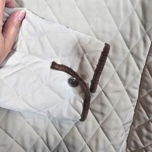 Croft & Borrow Quilted Jacket Lined Women's Size L Beige Velvet Trim Pockets
