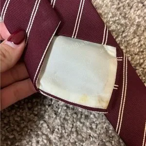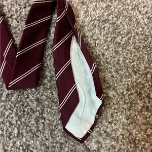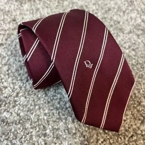 Christian Dior Neck Tie Mens Red Maroon / White Striped Pattern Poly/Silk Blend.